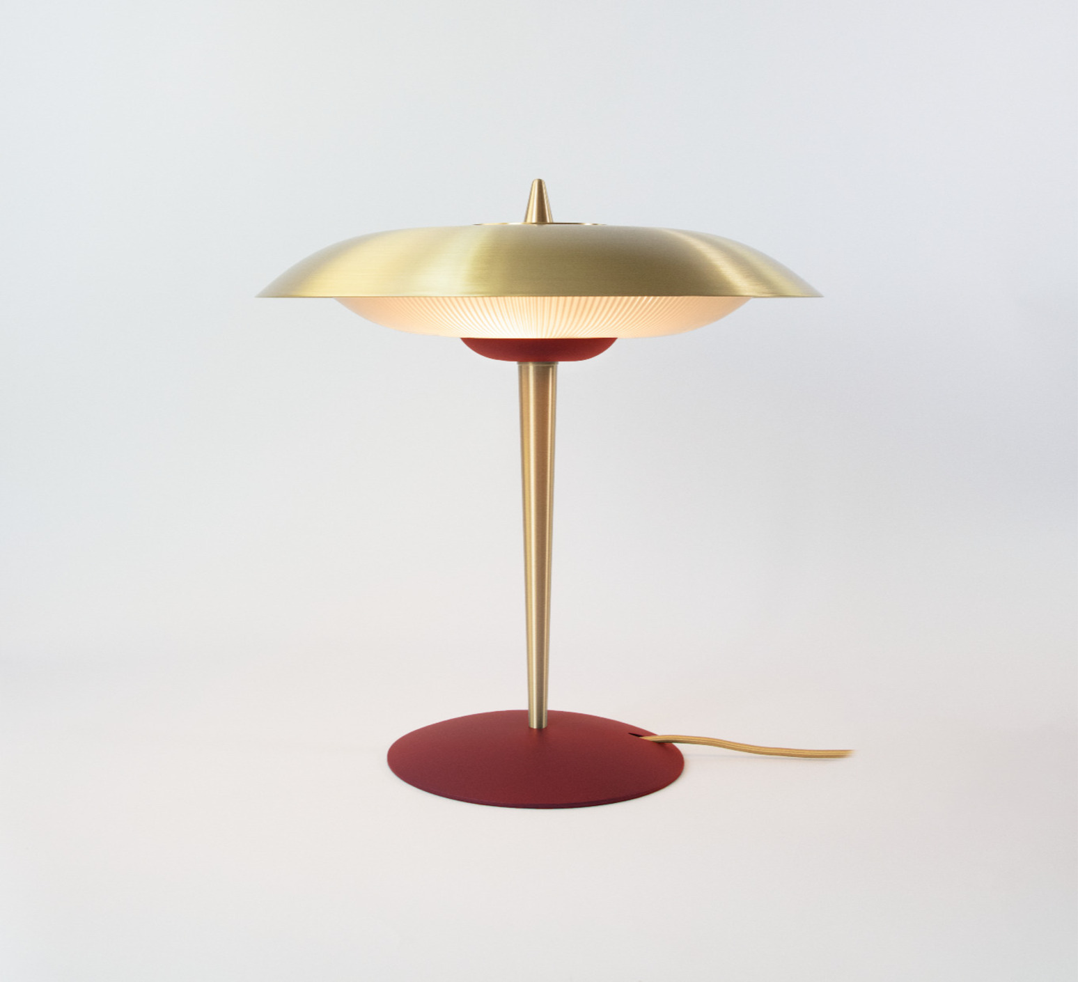 Table lamp, Durant, brushed brass and red, LED, 2700K, lm, Ø43cm, H44,3cm - Bert frank