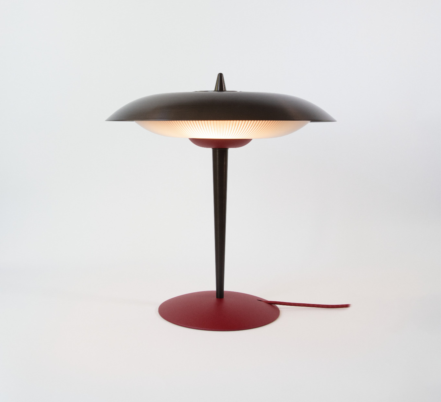 Table lamp, Durant, dark bronze and red, LED, 2700K, Ø43cm, H44,3cm - Bert frank