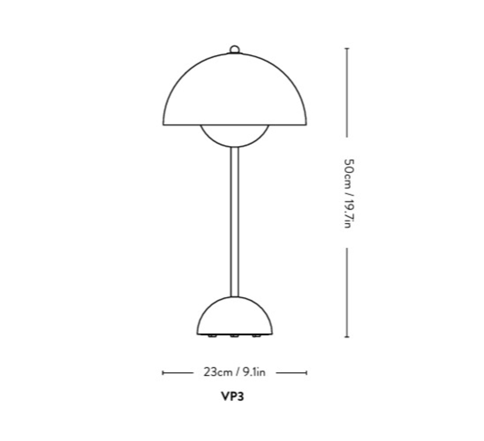AndTradition offers us a beautiful palette of fresh, up-to-the-minute colors in matte or gloss versions. A design icon that's an absolute must-have! The FlowerPot VP3 table lamp comes with a 2m textile cable. E27 bulb (max. wattage 40w) not included - IP20. Two years warranty.