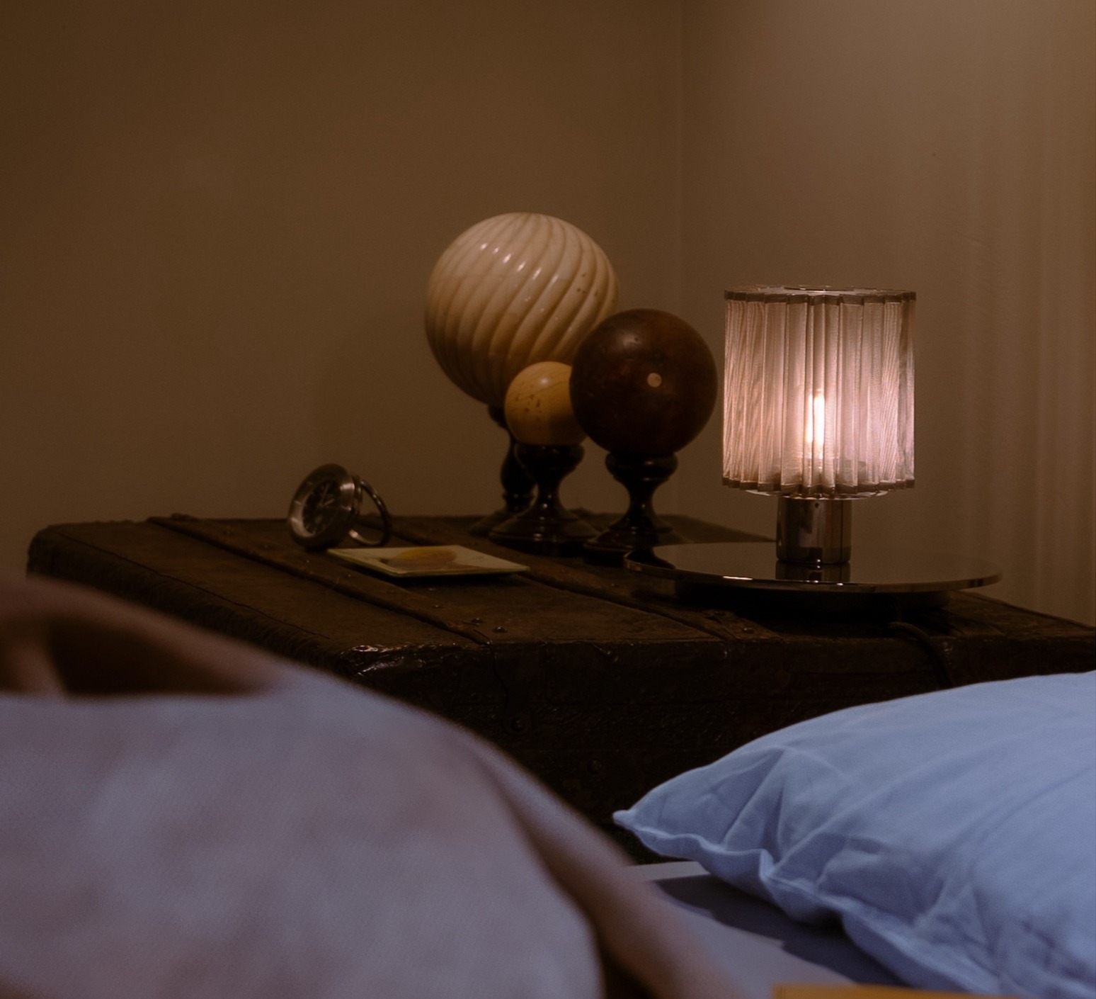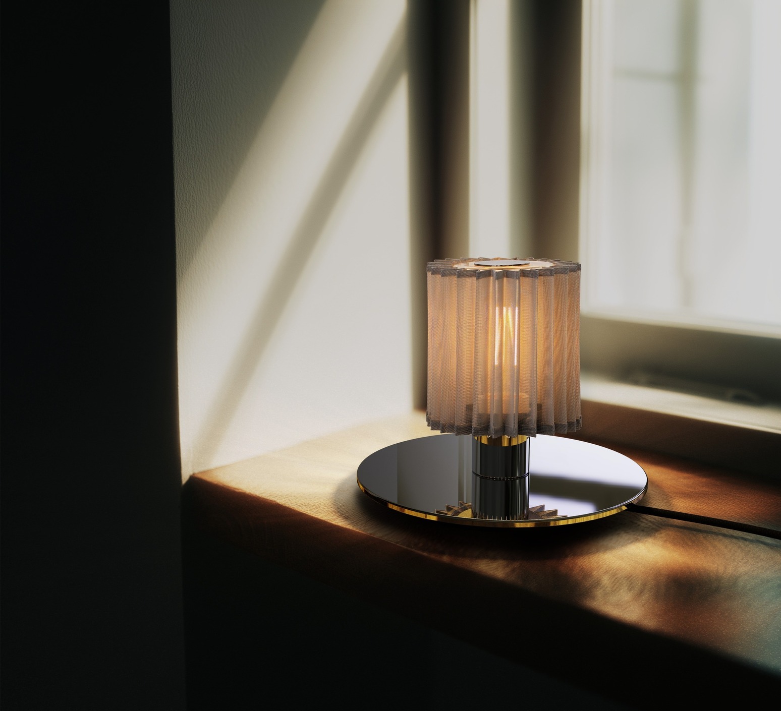 Placed on a desk, bedside table or console, In the Sun Table 220 diffuses a warm, almost theatrical light, ideal for creating hushed or more intense atmospheres, depending on the moment. Its openwork structure captures the light and casts it in dancing shadows, transforming every nook and cranny into a subtle, refined setting.