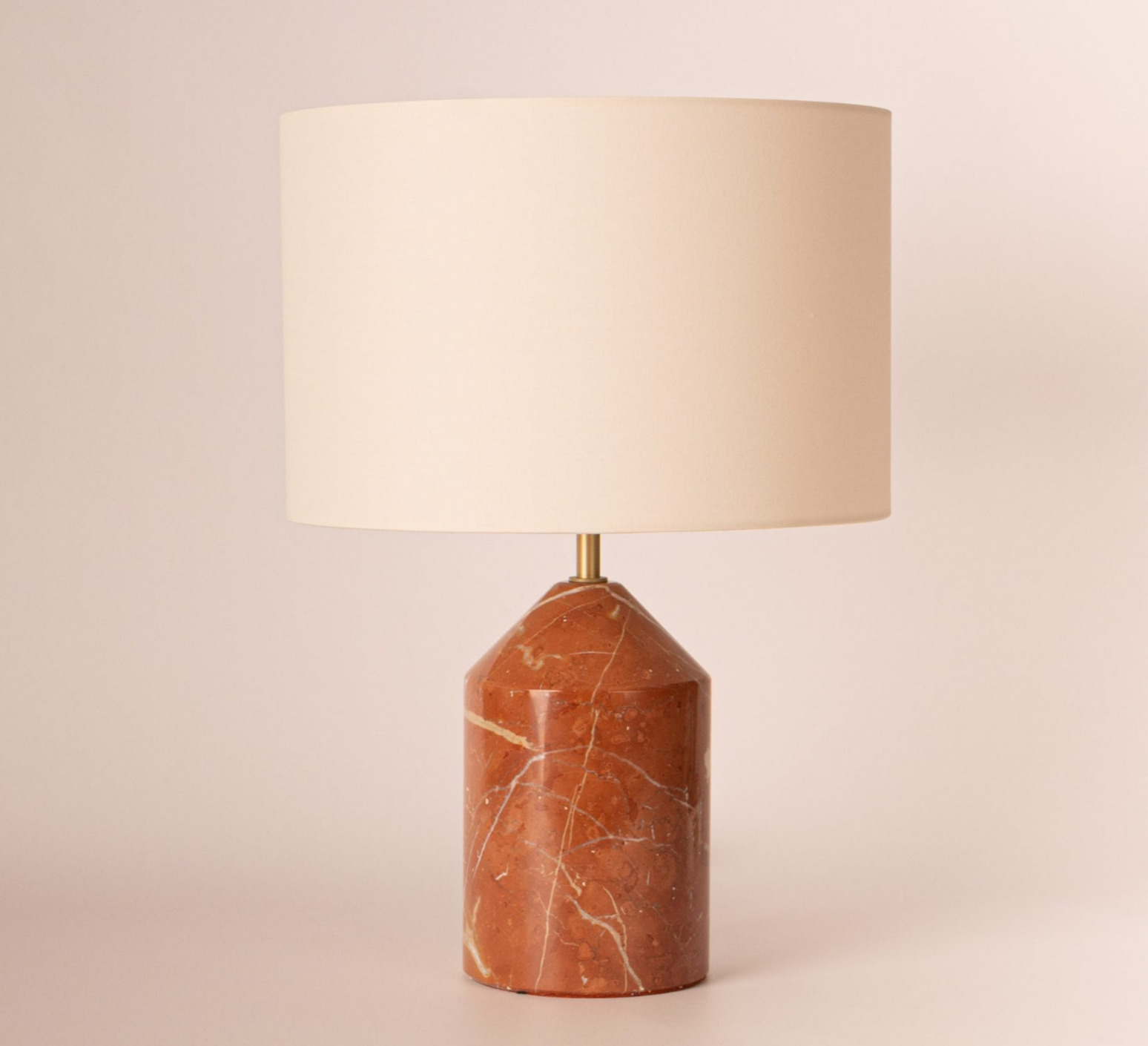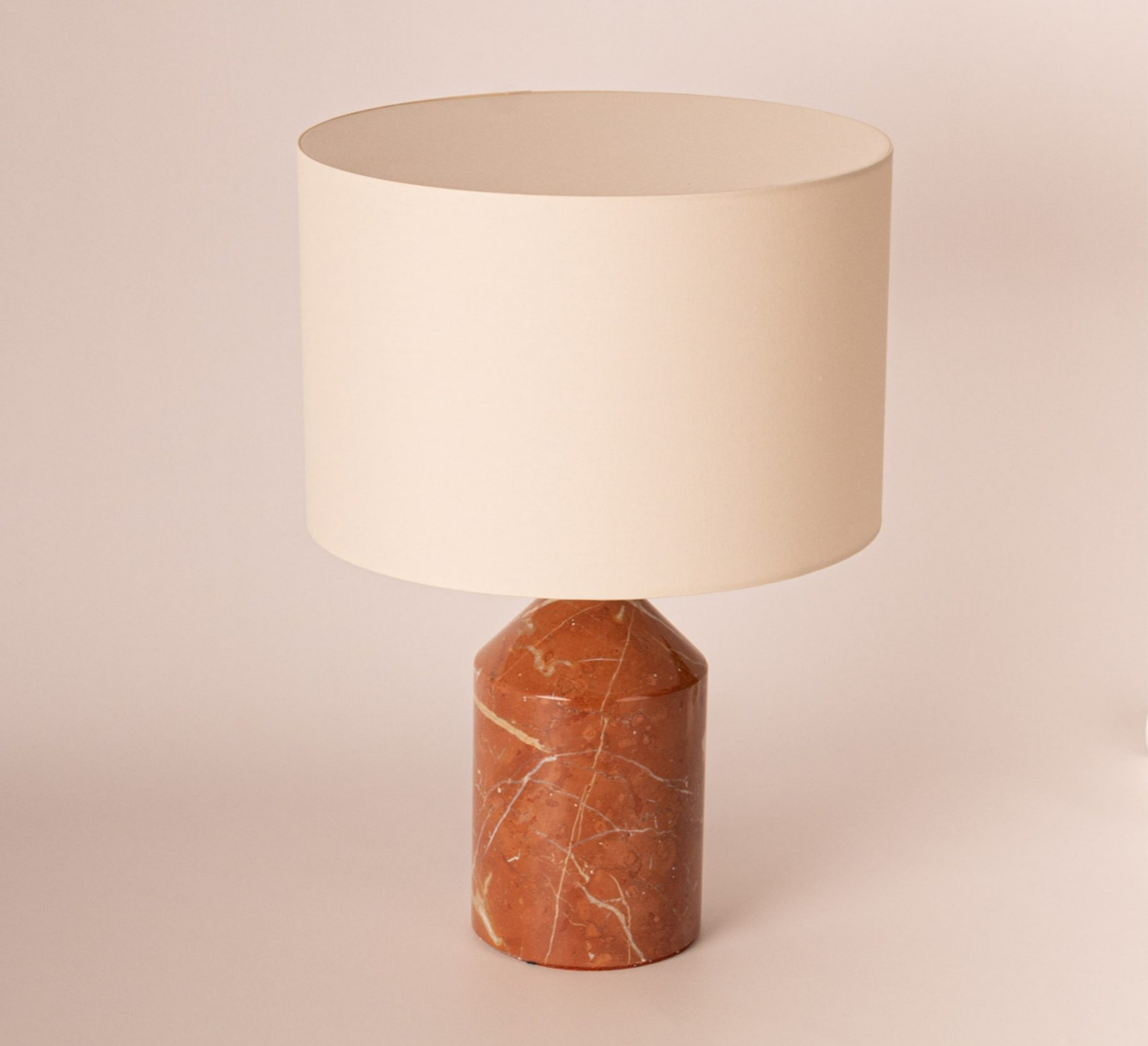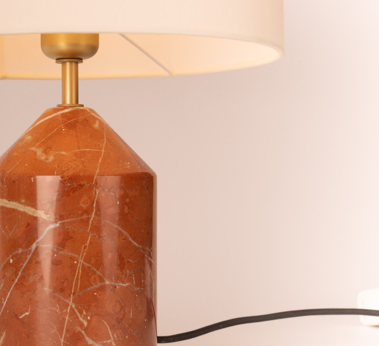 Table lamp, Josef , Red marble, cotton shade, Ø30cm, H42cm - Simone & Marcel