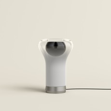 Reissued by the Danish firm Karakter, this rare piece testifies to Mangiarotti's talent for mastering shapes and materials. Made from blown glass, it features a soft, organic silhouette reminiscent of a mushroom. The lower part in white glass elegantly conceals the light source, while the gradual transparency towards the top allows a diffuse, soothing light to filter through. A veritable sculpture of light, Saffo is as seductive switched off as it is switched on, revealing the full craftsmanship of Italian glass.