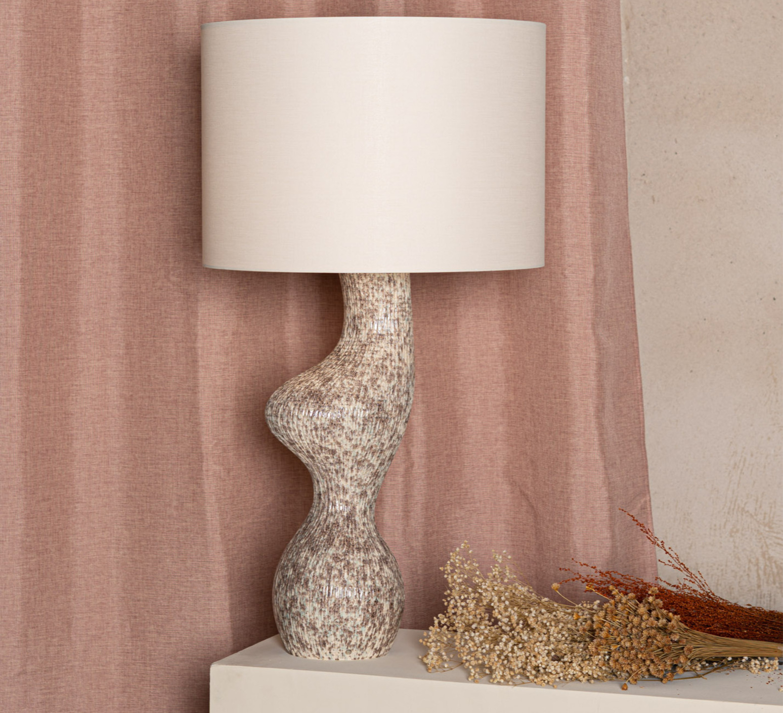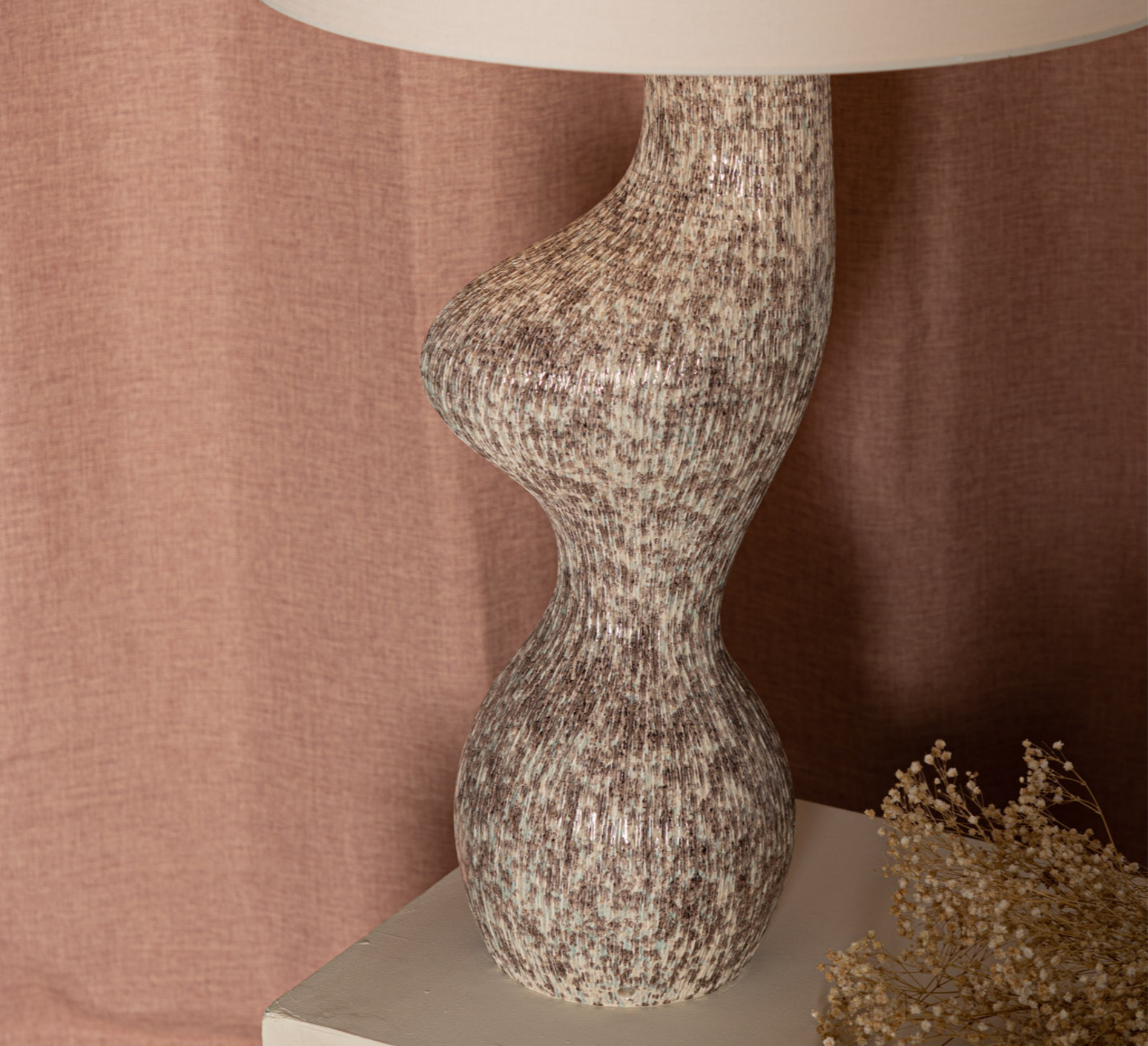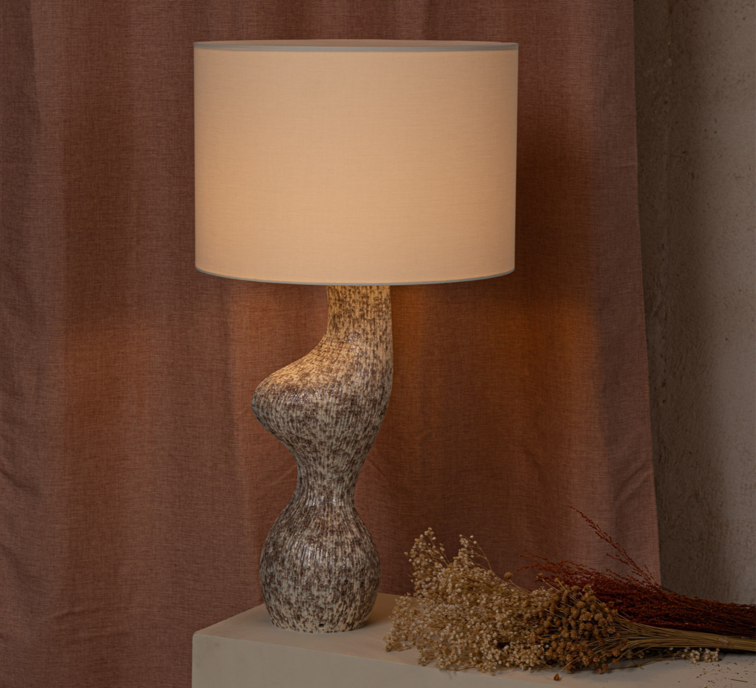 - red-ribbed ceramic, cotton lampshade