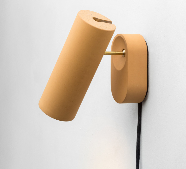 Made from concrete and brass, Argia's tubular silhouette (Ø6.5 cm x H17.5 cm) and yellow finish give it a style that's both mineral and contemporary. Its exposed 1.9 m black cable makes for a free, graphic installation, ideal as a wall light in a living room, hallway or above a bedside table.