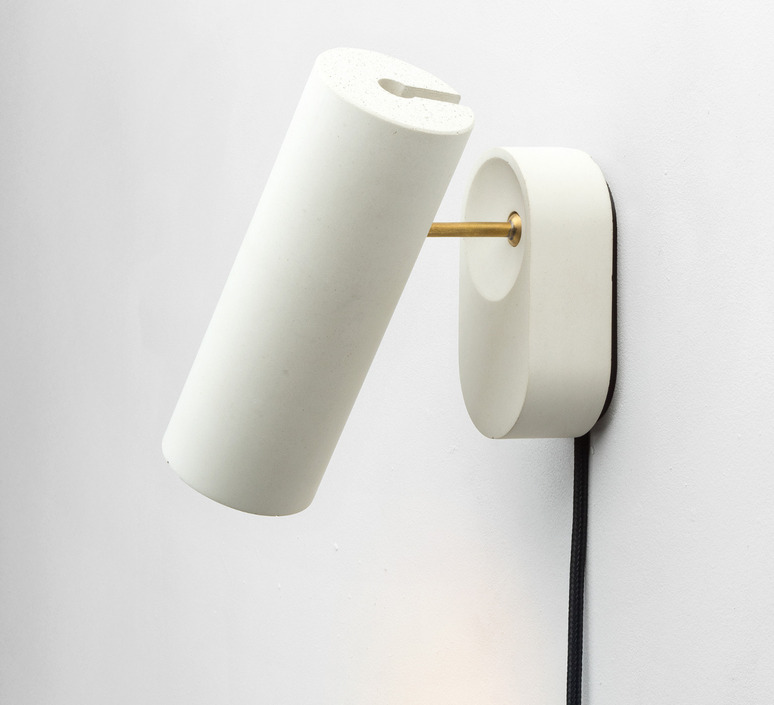 Made from concrete and brass, Argia's tubular silhouette (Ø6.5 cm x H17.5 cm) and ivory finish give it a style that's both mineral and contemporary. Its exposed 1.9 m black cable makes for a free and graphic installation, ideal as a wall light in a living room, hallway or above a bedside table.