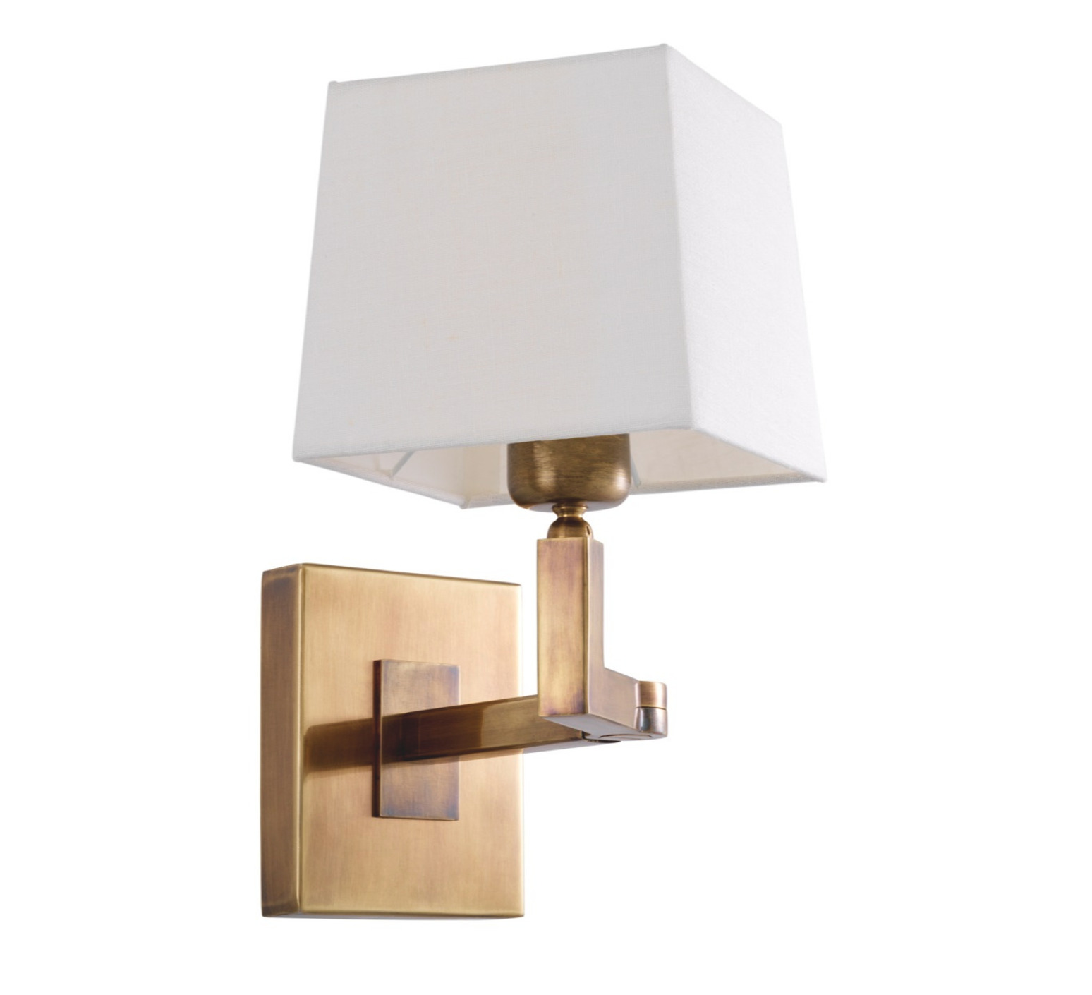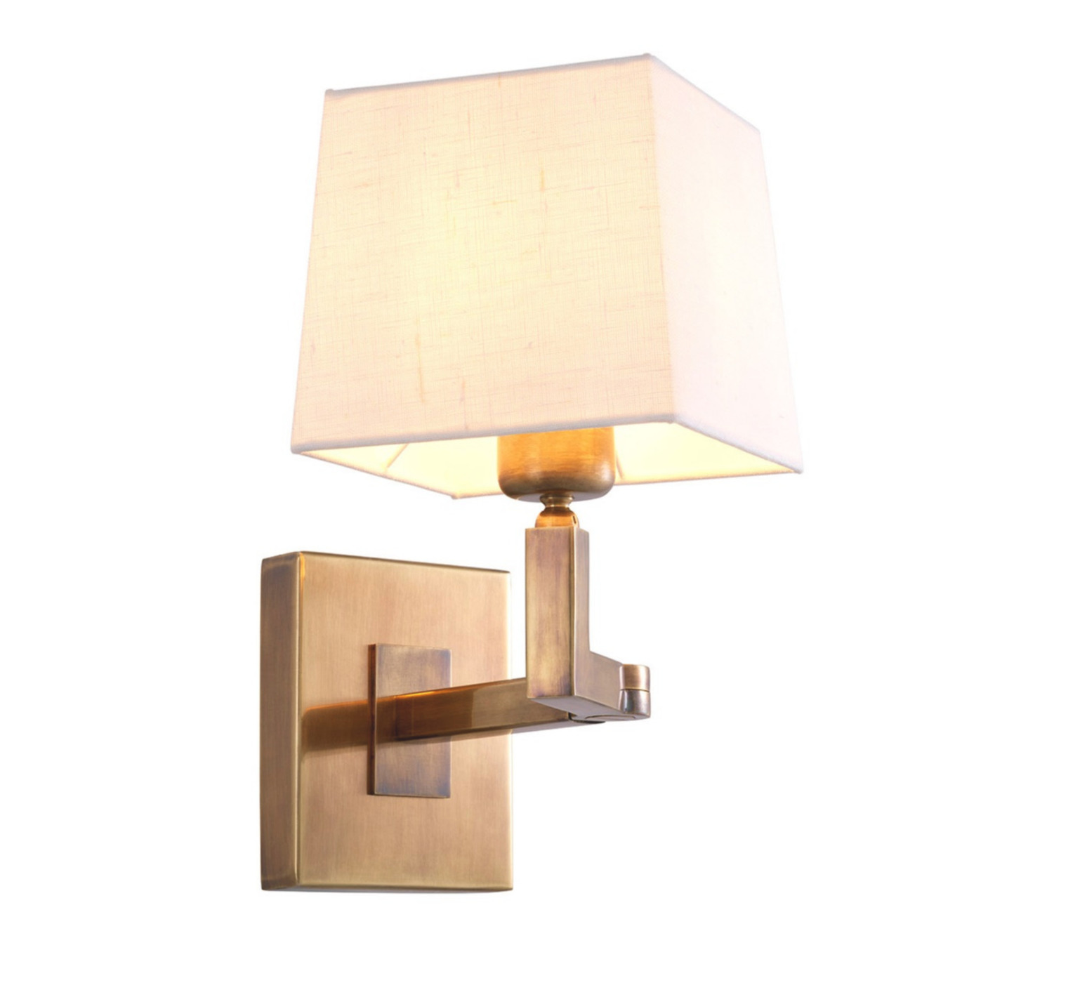 Wall lamp, Cambell, Vintage brass, white linen shade, W15cm, H28cm - Eichholtz