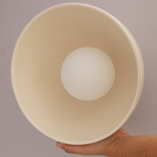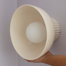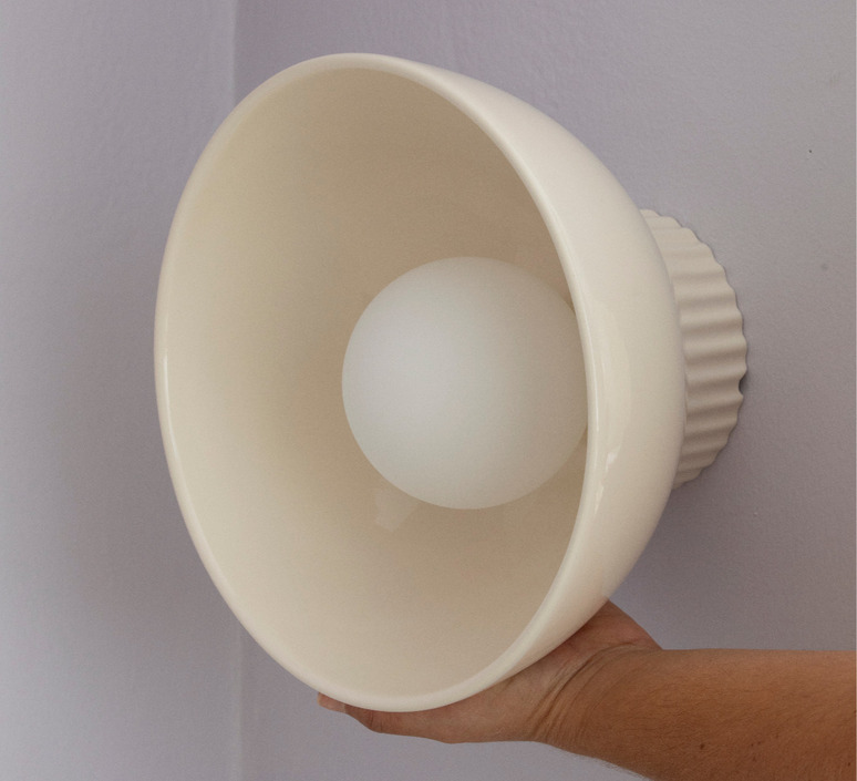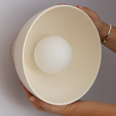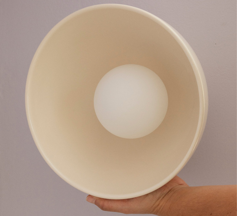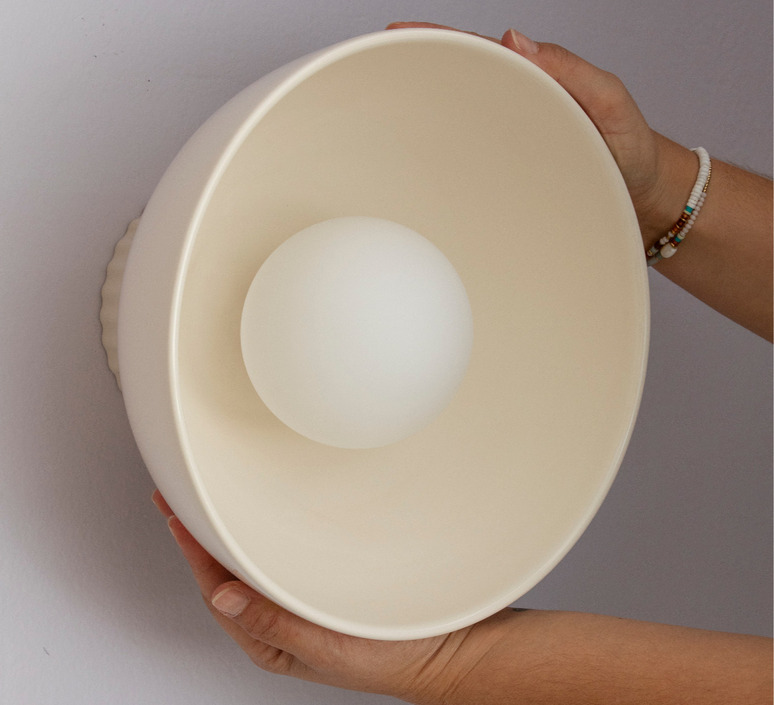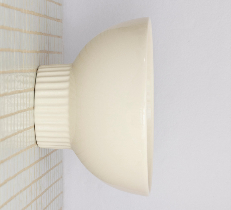With a diameter of 25 cm and a height of 16 cm, the Coupo wall lamp is fixed and non-dimmable. It works with a light source not included and provides diffused decorative lighting. We recommend a 7W Max G9 bulb. Coupo is handcrafted using the finest ceramics and glass.