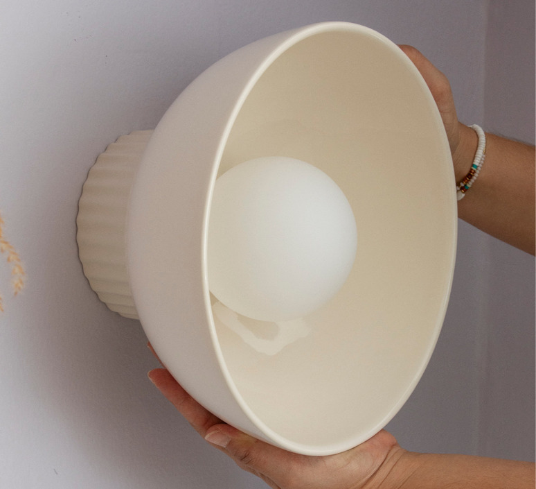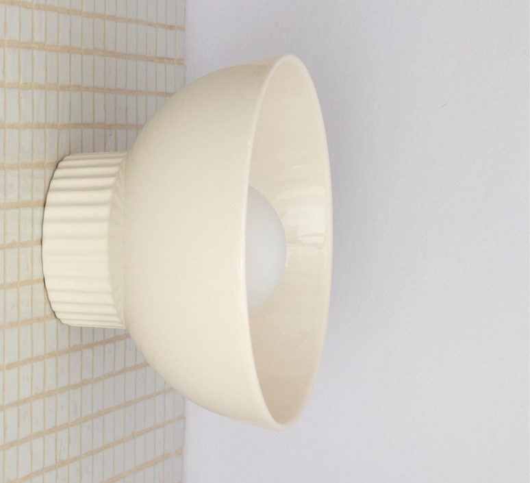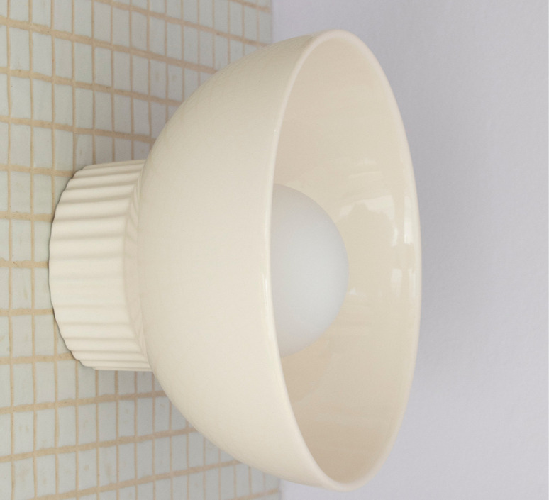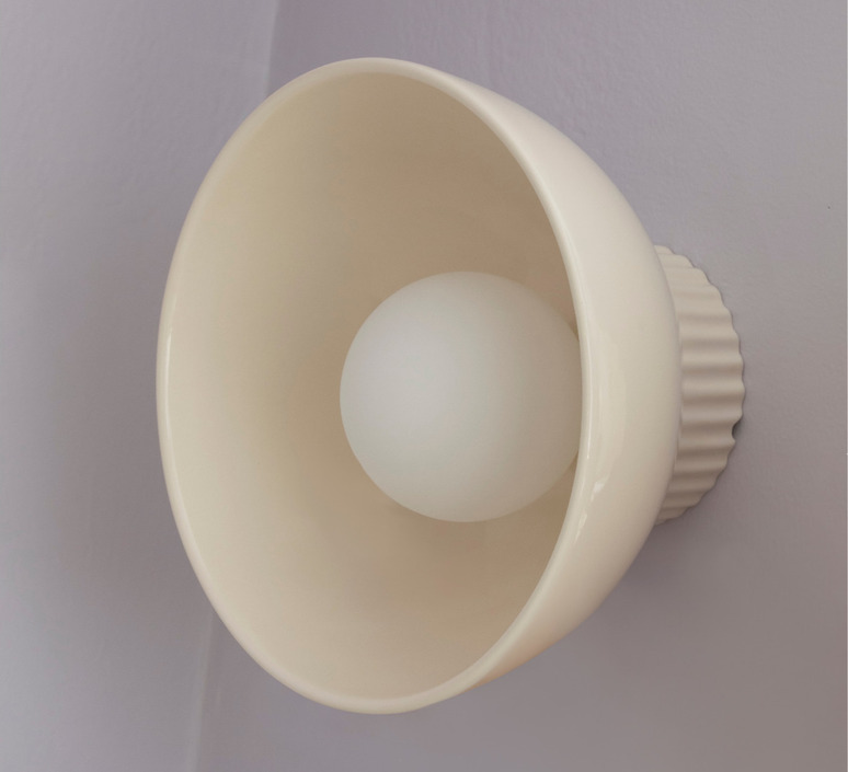 With its spherical shape and striated ceramic base, the Coupo wall light brings relief and personality to walls. Its opaline glass globe diffuses a soft 360° light, ideal for creating a welcoming atmosphere in an entrance, hallway or bedroom. Placed on its own or as a wall-mounted composition, it simply enhances the space.