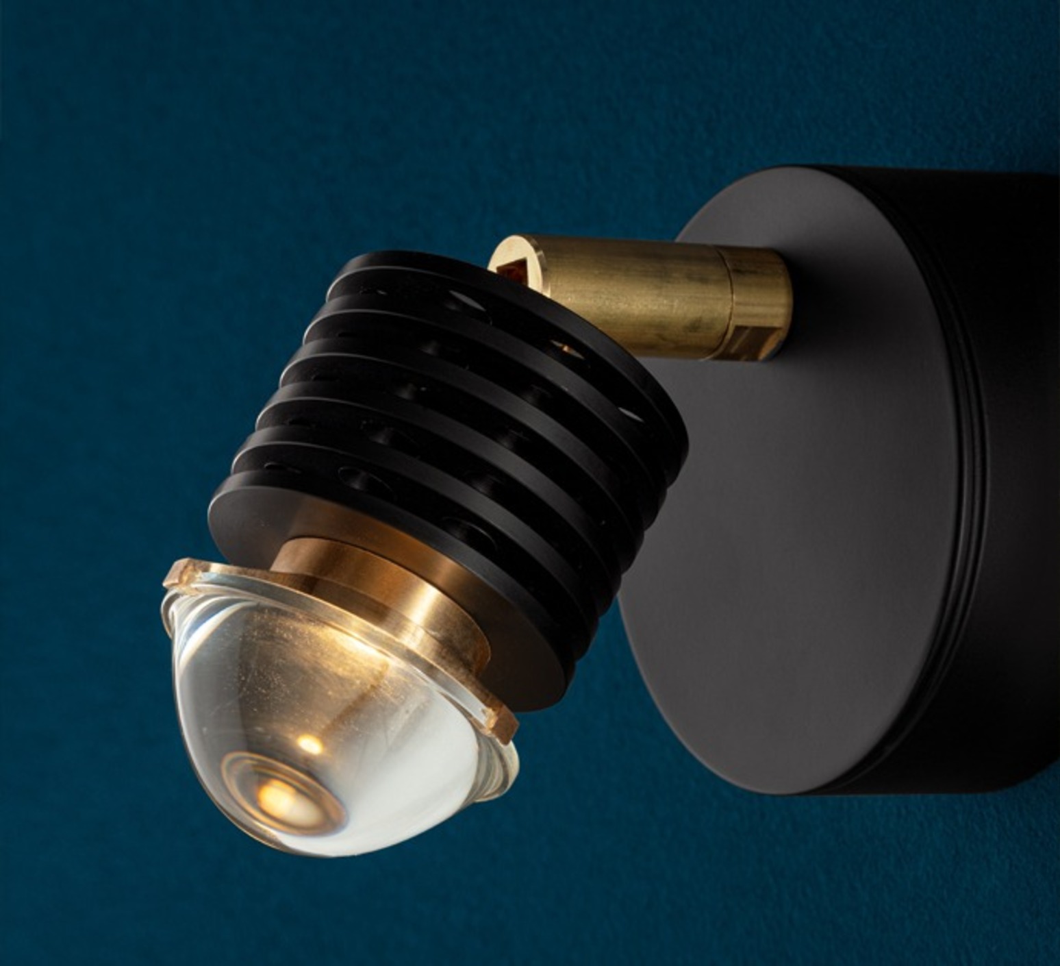 This EC 301 wall lamp from Catellani & Smith, designed by Enzo Catellani, offers a neat, minimalist style, combining black painted metal for the base and structure with brass details and a removable glass lens.