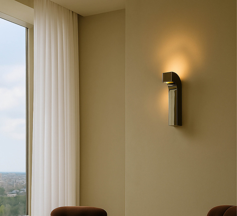 Fold is distinguished by its chrome finish and clean lines, creating a strong visual impact. With its dimensions of 8 cm wide and 45 cm high, it fits perfectly into small spaces or as a decorative element in a living room or hallway. For optimum effect, combine it with walls in neutral colors, highlighting its chic, sophisticated design.