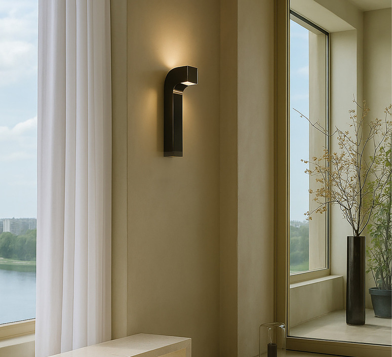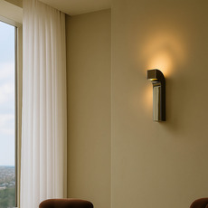 The Fold wall lamp is equipped with an LED source offering 350 lumens at a color temperature of 3000K, guaranteeing soft, warm indirect lighting.