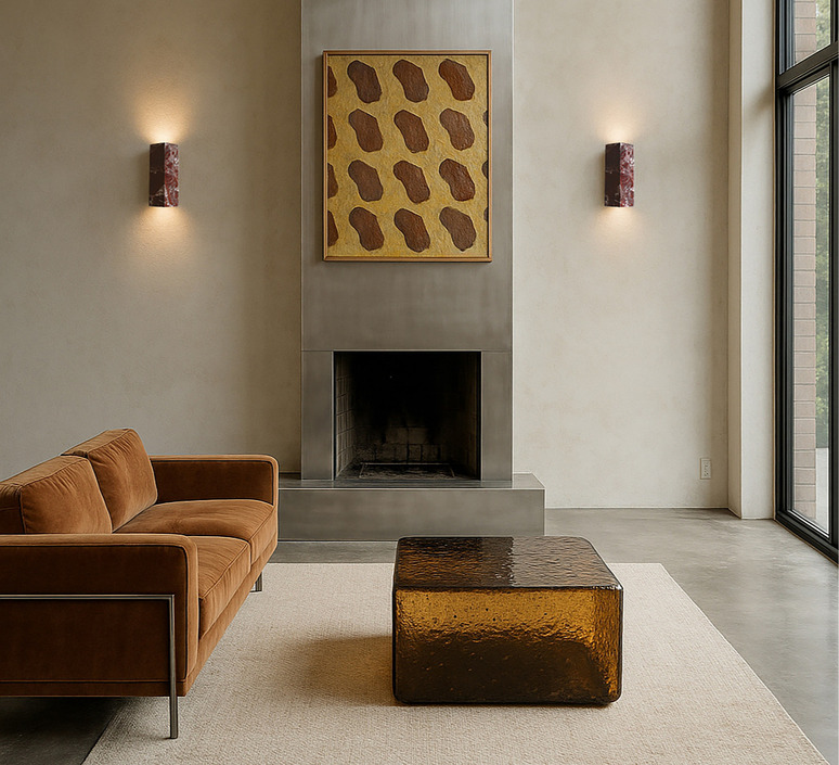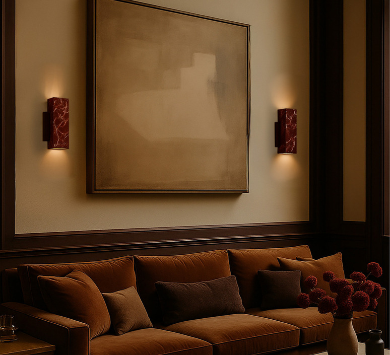 Wall lamp, Kali Square, Red marble, L11.3cm, H25cm - BACCARIS