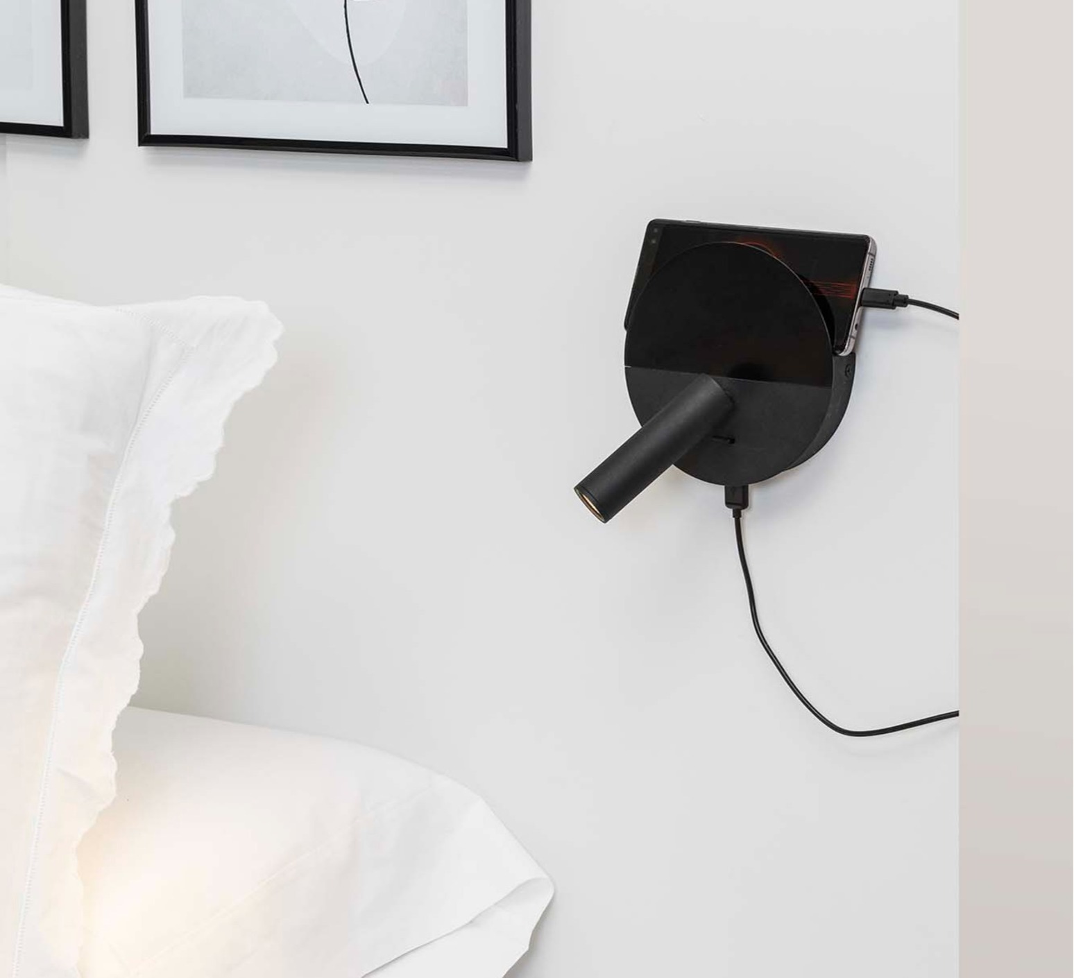 With its tubular shape and direct lighting, the Duas wall light is ideal for contemporary interiors. It features an integrated switch and USB socket, offering optimum functionality. Perfect for reading or working areas, this luminaire is surface-mounted and blends harmoniously with a variety of decors thanks to its architectural style. It's also ideal for illuminating headboards in hotels or private homes, for example.