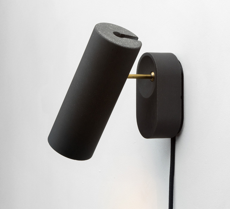 Made from concrete and brass, Argia's tubular silhouette (Ø6.5 cm x H17.5 cm) and black finish give it a style that's both mineral and contemporary. Its exposed 1.9 m black cable makes for a free, graphic installation, ideal as a wall light in a living room, hallway or above a bedside table.