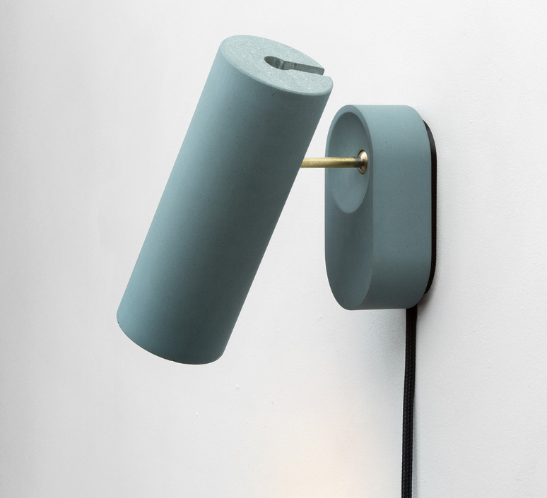 Made from concrete and brass, Argia's tubular silhouette (Ø6.5 cm x H17.5 cm) and blue finish give it a style that's both mineral and contemporary. Its exposed 1.9 m black cable makes for a free, graphic installation, ideal as a wall light in a living room, hallway or above a bedside table.