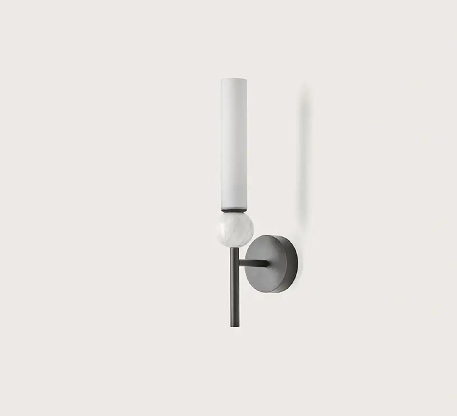 This sconce can be placed on either side of a mirror, at the head of a bed, or along a wall in a hall or living room to punctuate wall lighting. It works particularly well when installed at eye level, making the marble a decorative focal point.