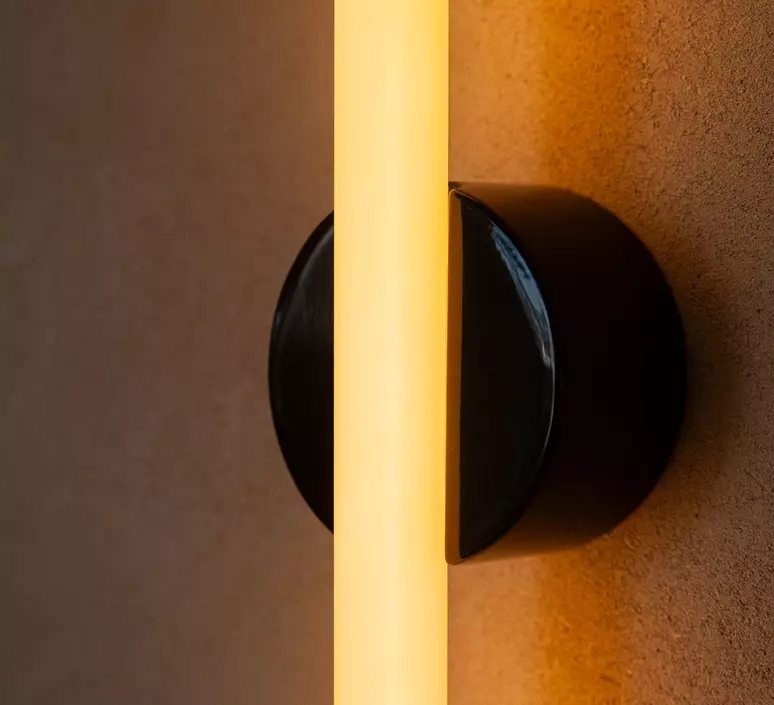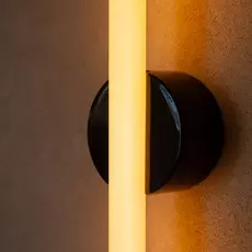 Named in reference to balance, the Kilter wall lamp is composed of a Linestra S14d tubular bulb that is fixed in the centre of its base.