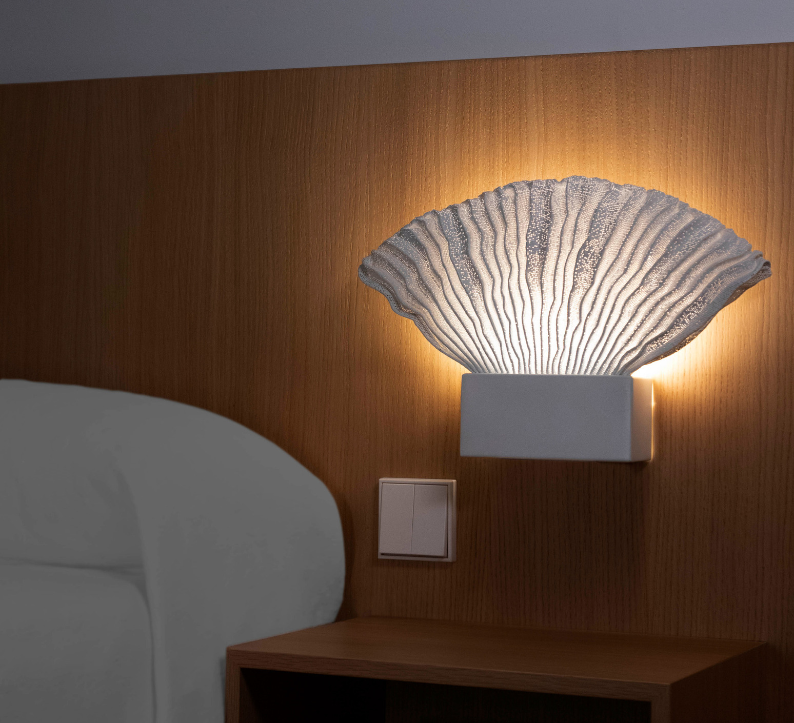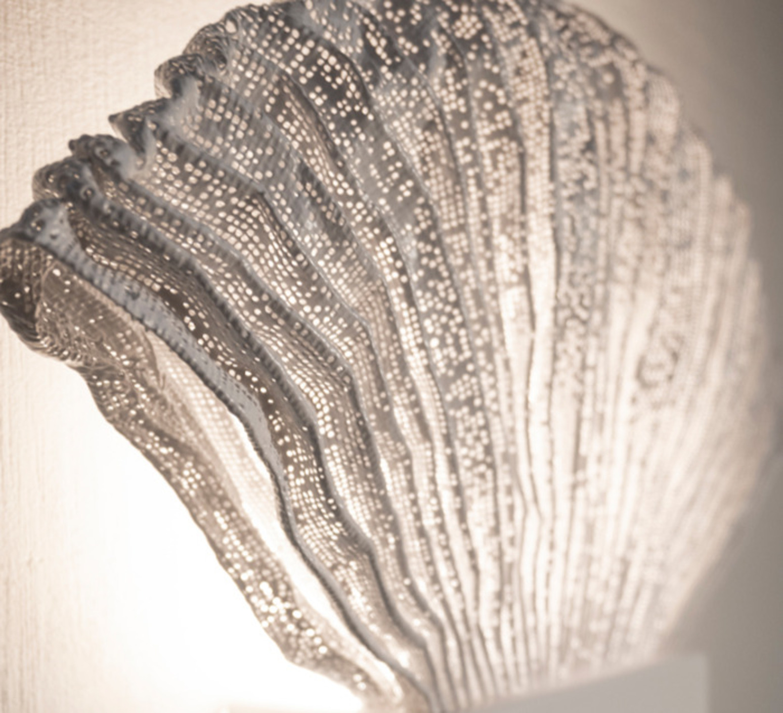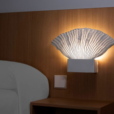 Venus is inspired by Botticelli's "The Birth of Venus", translating a natural, organic element into an elegant wall silhouette. Its soft, feminine form diffuses indirect light to create a warm, enveloping ambience.