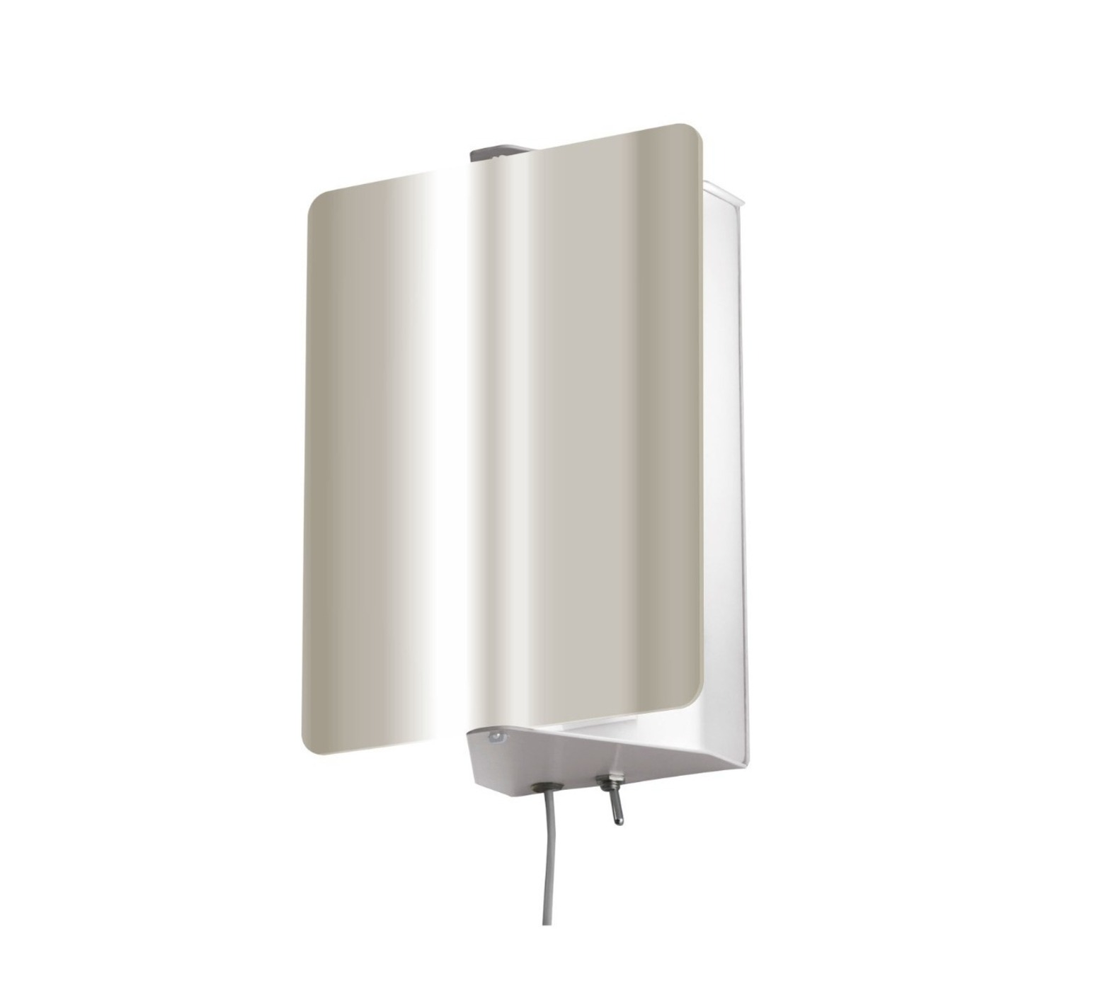 The famous French architect was part of the modern movement of the 20th century. Her sconces are simple and effective in design. They feature a white metal body and a stainless steel/mirror-effect aluminum shutter. The shutter is adjustable and positioned to diffuse indirect light.