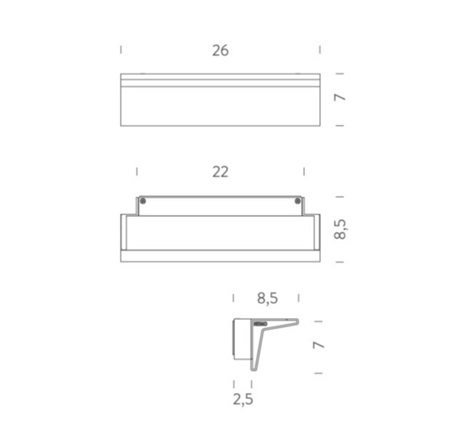 - L 26.0cm x H 7.0cm x P 8.5cm