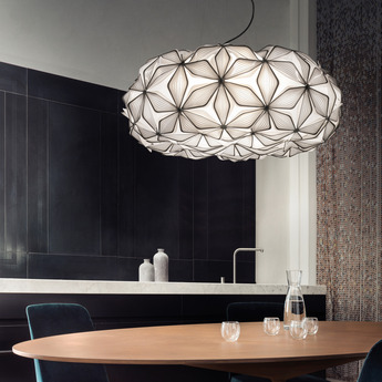 Designed for decorative interior lighting, this model boasts a clean, controlled graphic style in keeping with the Italian brand's identity.