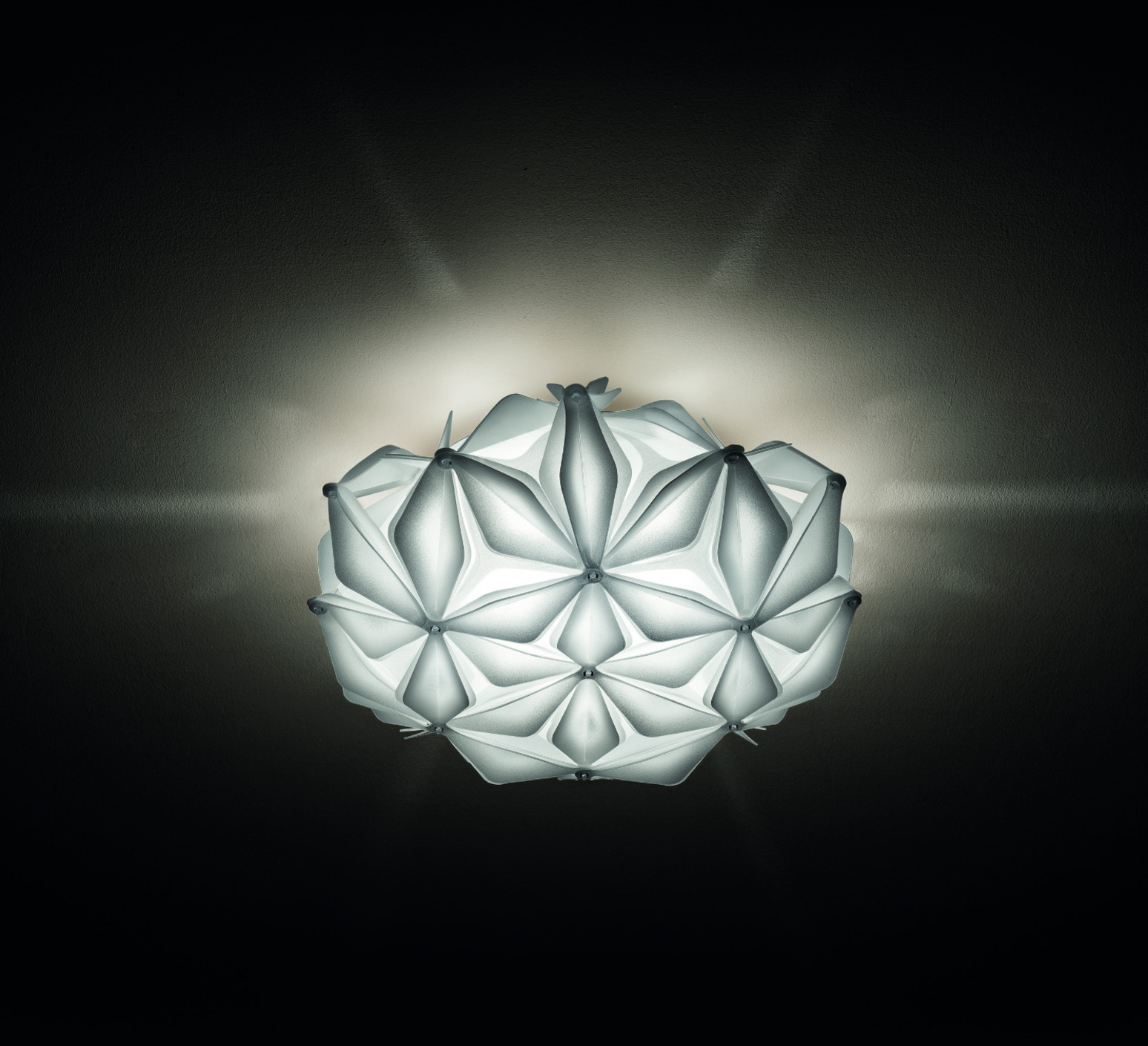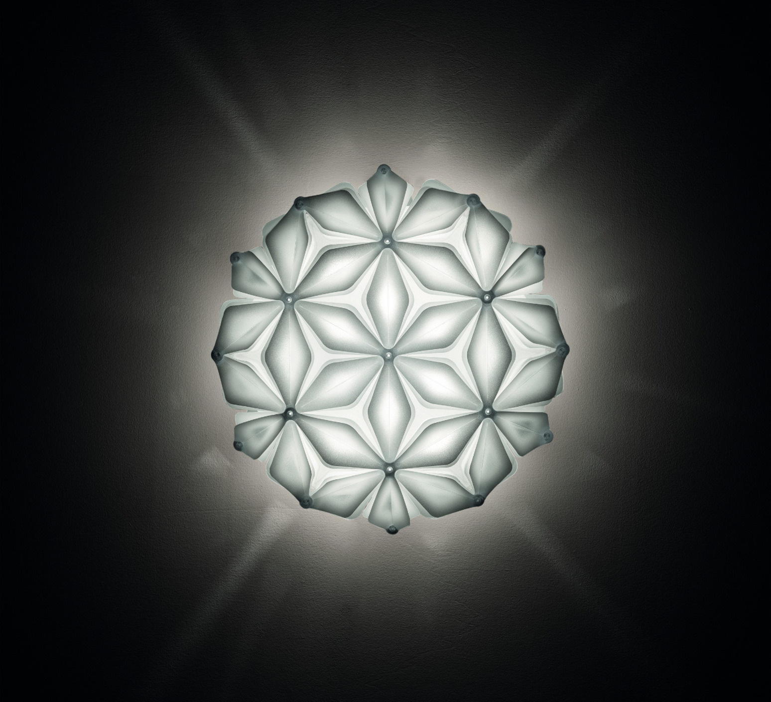 This luminaire is inspired by the famous symbolism of the Flower of Life, representing the infinite configurations of materials, from atoms to galaxies, contained in the universe.