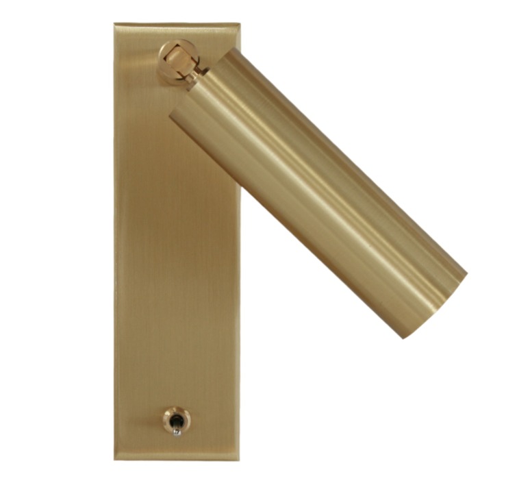 Its brushed brass finish with matte varnish asserts a sober, functional aesthetic. Its slender format and discreet ball-and-socket joint allow the light to be directed in a fluid manner. Placed at the head of a bed, integrated into a niche or mounted on a wall panel, it fits naturally into interiors with clean lines, where every detail counts.