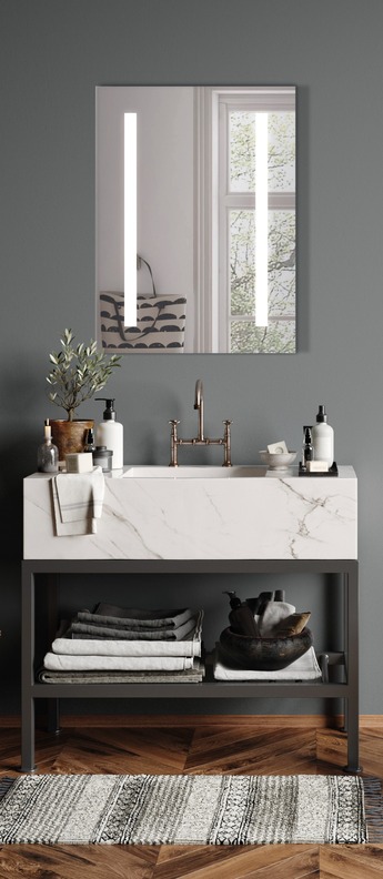 Wall lamp, illuminated mirror, Day, mirrored glass, IP44, LED, 3000...