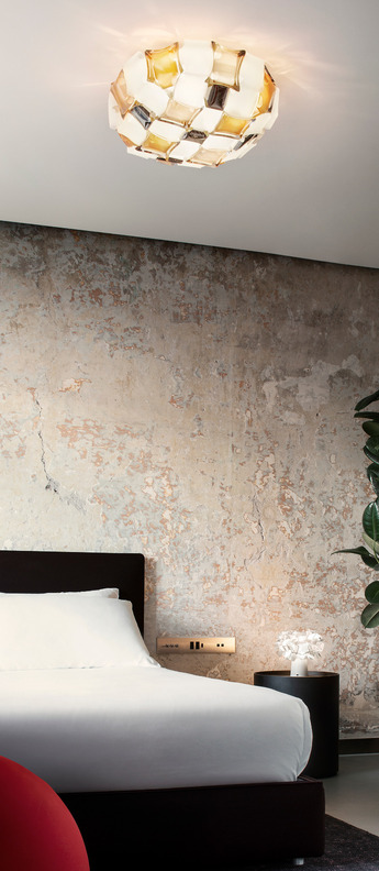 Ceiling light, Diamante PL G , amber, nickel, Ø30cm, H25cm - Vistosi