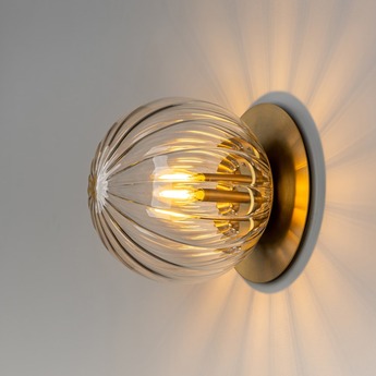 Wall light, Pulsar 200, brass, ribbed clear glass, Ø20cm, H21,7cm ...