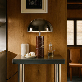 Table lamp, Adei XL, Red marble, chrome shade, Ø35cm, H52cm - BACCARIS