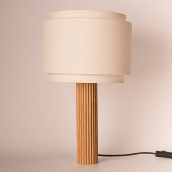 Table lamp, Fluta , oak wood, cotton shade, Ø40cm, H58cm - Simone &...