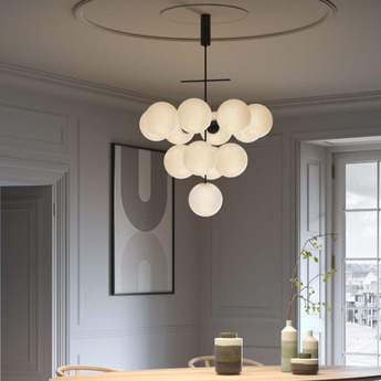 Ceiling light, Planets 13, white, black, ∅80,5cm, H120cm - LUMEN CE...