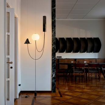 Hanging lamp, Nuro, S1349, white glass, 3 white marble discs, black...