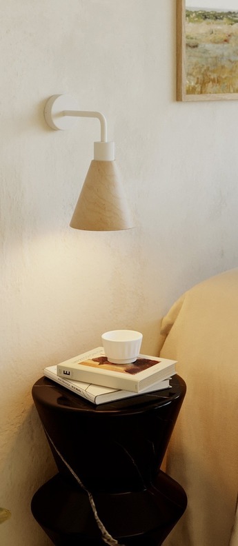 Wall lamp, Fermaluce, matt white, alder wood, W15cm, H28.3cm - Crea...
