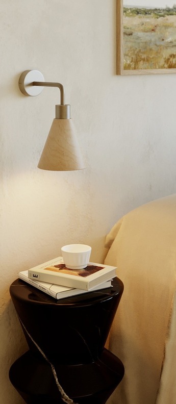 Wall lamp, Fermaluce, satin titanium, alder wood, W15cm, H28.3cm - ...