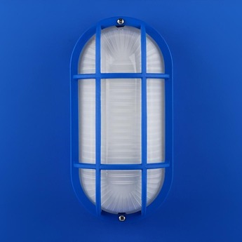 Wall lamp, Benji, blue, opal glass, IP44, W11cm, H22cm - Zangra