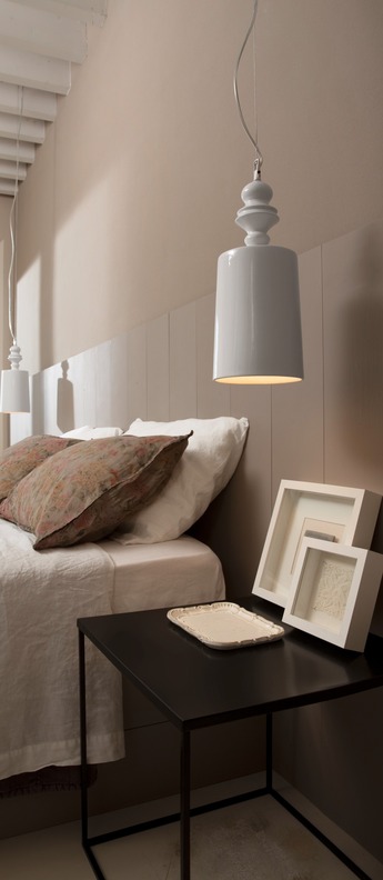 Hanging lamp, Ali e Baba, white ceramic, Ø35cm, H95cm - Karman