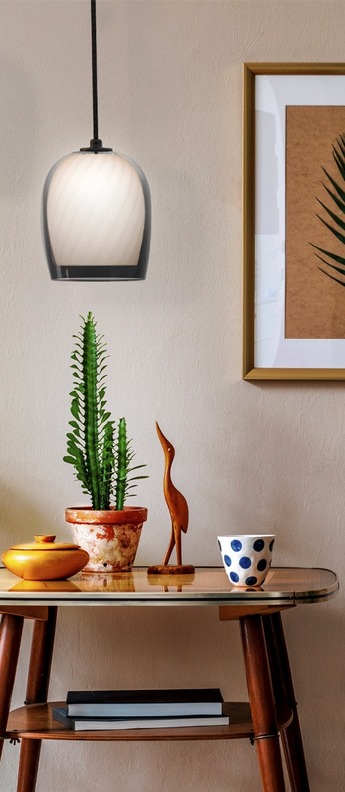 Hanging lamp, Bruma, smoked and white glass, Ø18cm, H21cm - Robin