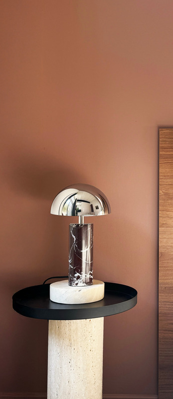 Table lamp, Adei L, Red marble, chrome shade, Ø20cm, H35cm - BACCARIS