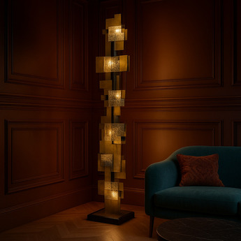 Floor lamp, Langham, Vintage brass, glass, Ø28cm, H166cm - Eichholtz