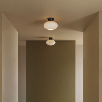 Ceiling lamp, Bullo, black and opal glass, IP21, Ø27cm, H21,2cm - B...