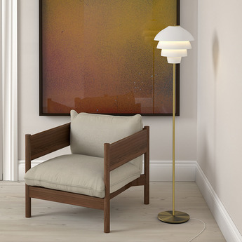 Floor lamp, Valencia, white and brass, Ø32cm, H151cm - Belid