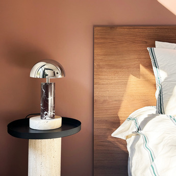 Table lamp, Adei L, Red marble, chrome shade, Ø20cm, H35cm - BACCARIS