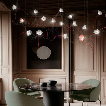 Suspension lamp, Poppy 7, prisma, red-coated brass, LED, dim, 2700K...