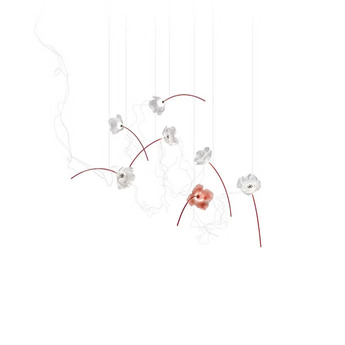 Suspension lamp, Poppy 7, prisma, red-coated brass, LED, dim, 2700K...