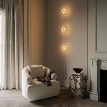 Wall lamp, Ghost Spotaluce X3, clear glass, RN02 mottled grey cable...
