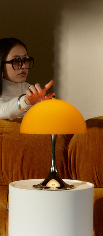 Lamp, Hand lamp, Panthella 160 V3 Originals, opal orange, chrome, I...