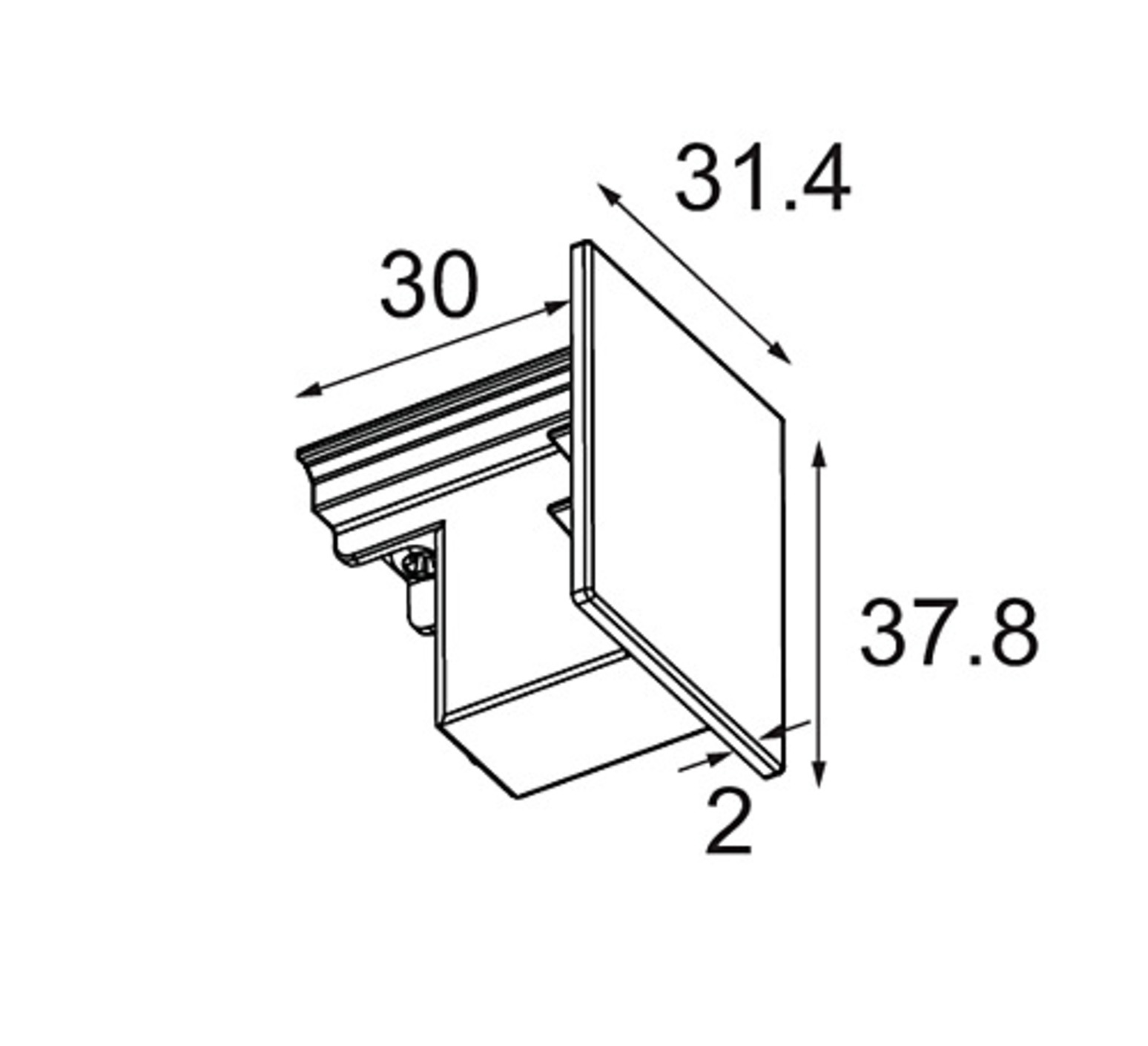 Modular presenta su colección Track 230V con el accesorio Endplate negro, de 3,14 cm de largo y 3,78 cm de alto.