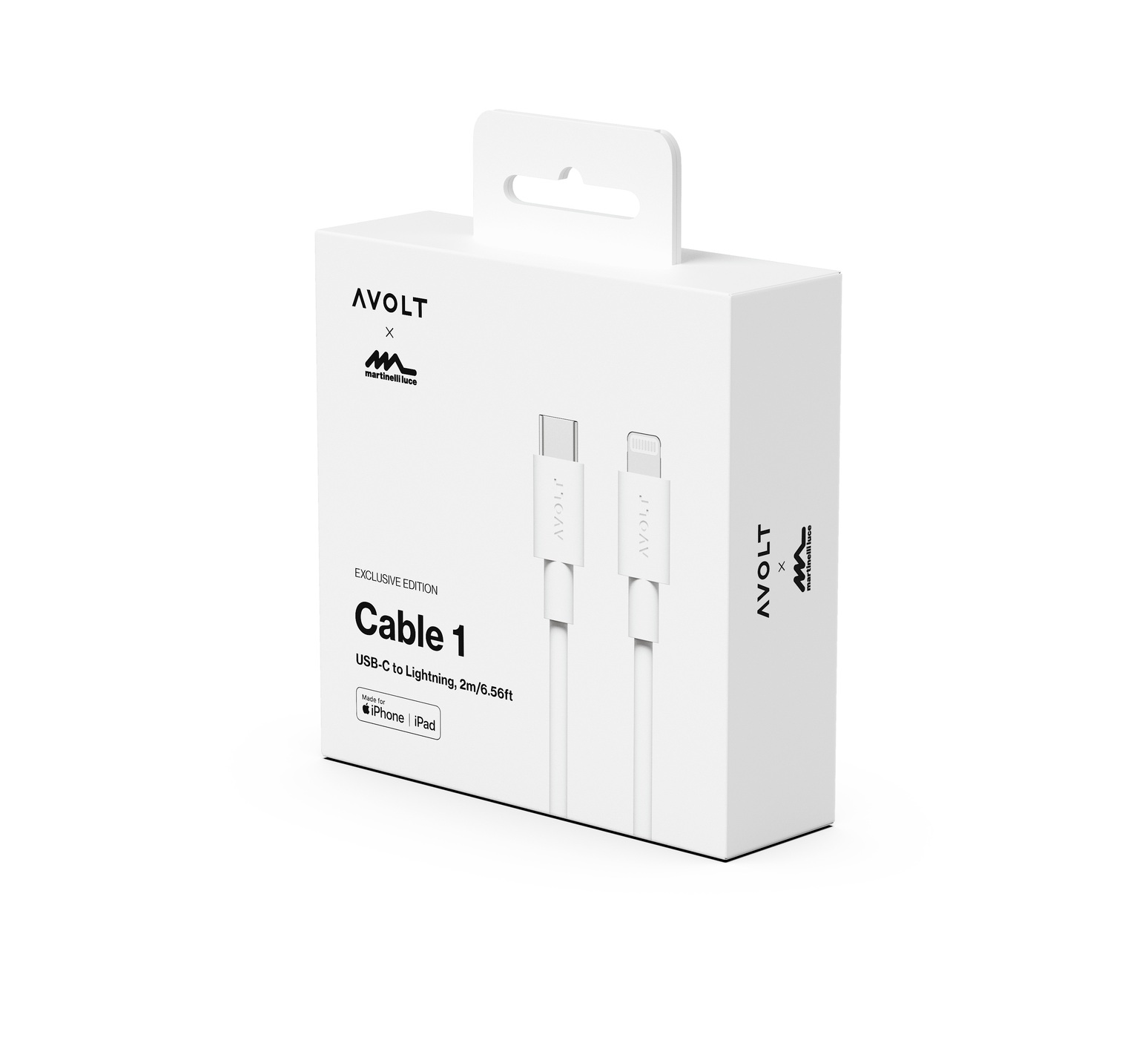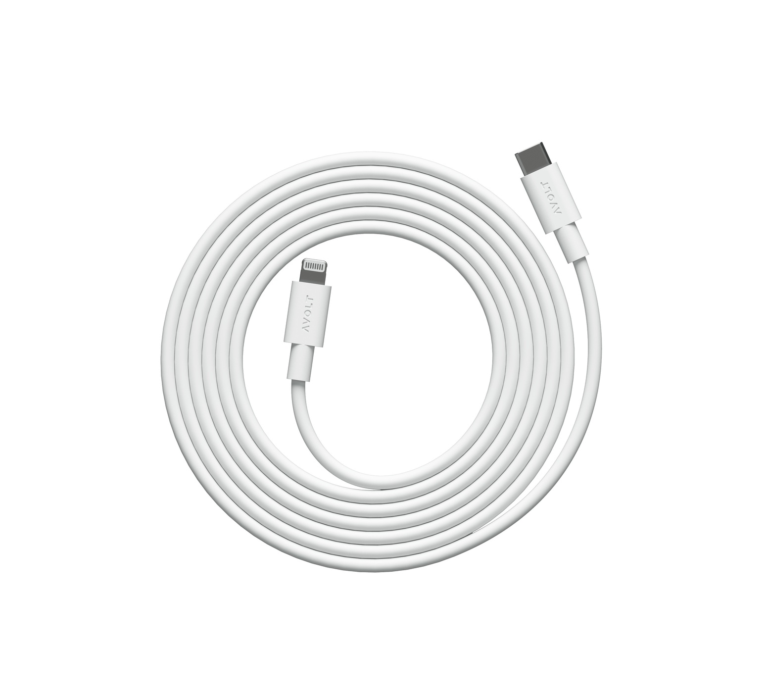 El cable USB-C a Lightning blanco Martinelli Luce Edition - Colección Cable 1 - Avolt es un accesorio de carga de 2 metros diseñado para acompañar a la serie Square 1.